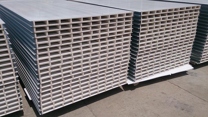 中空玻鎂彩鋼夾芯板以二層5mm防火玻鎂板、中間加防火玻鎂內(nèi)隔條為芯材,經(jīng)彩鋼夾芯板多功能連續(xù)生產(chǎn)線復(fù)合成型,中空玻鎂彩鋼夾芯板其特點(diǎn)...